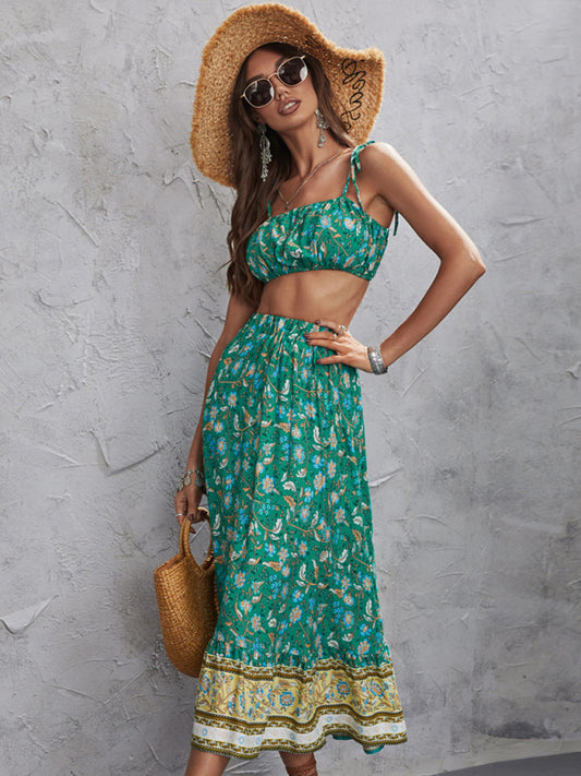 Women's Ethnic Printed Sling Top + Skirt Two-Piece Set